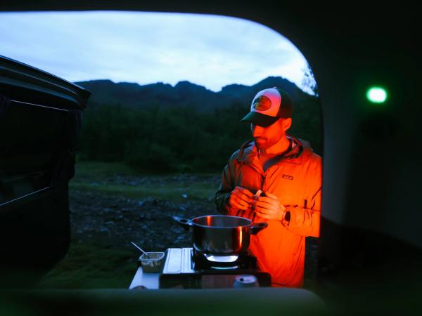 Presentamos la camper Go 4x4 Cruiser, modificada sobre el fiable Toyota Land Cruiser de 2024. Es perfecta para las Tierras Altas de Islandia y en ella pueden dormir dos personas cómodamente gracias a su sencillo sistema de baldas extraíbles. Esta Go Camper 4x4 mejorada promete una experiencia de acampada inolvidable. En el interior hay mucho espacio y un sistema de calefacción Webasto para noches frías, un fogón de gas, frigorífico eléctrico y un set de cocina completo.